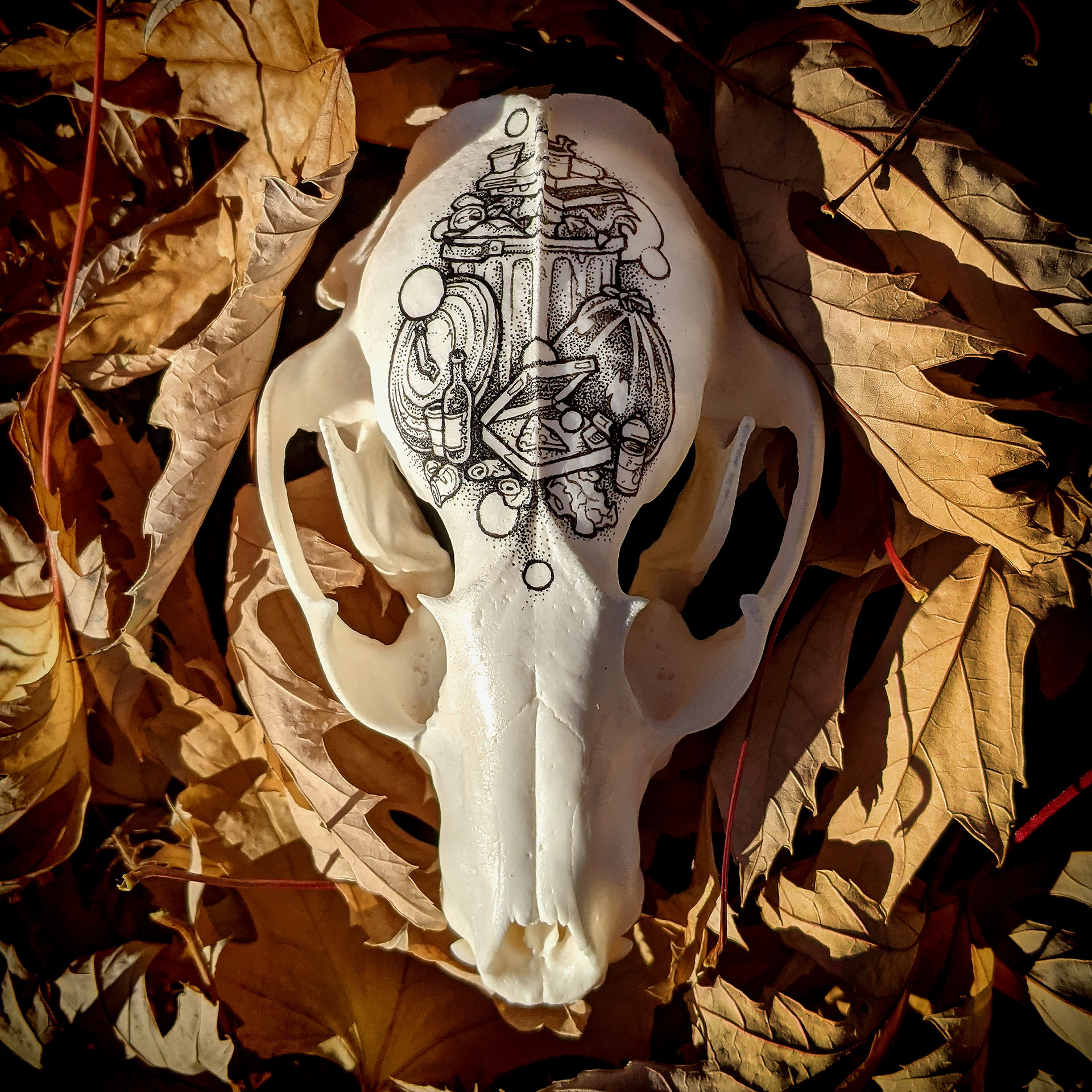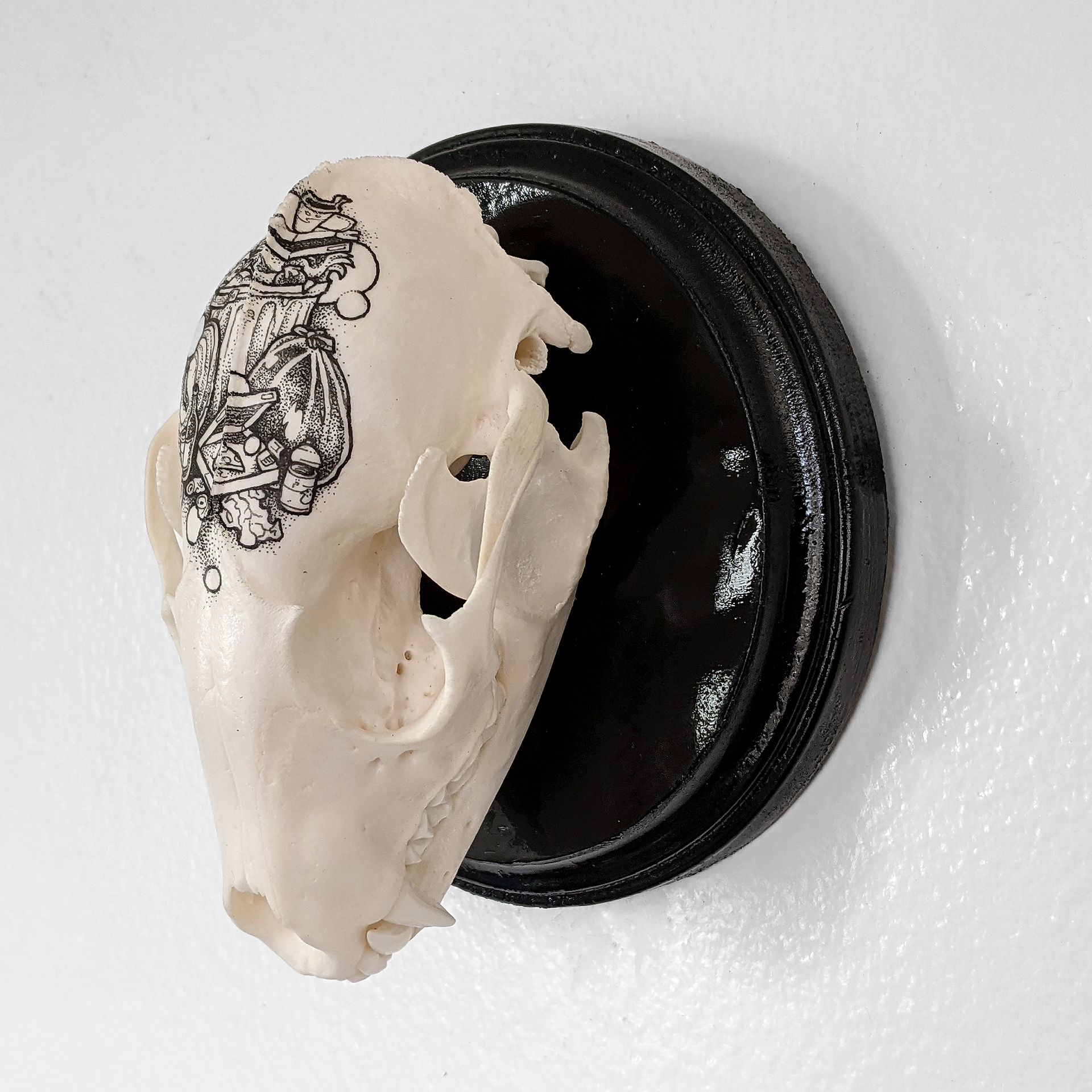 Trashcan - Ink on Raccoon Skull, 2021