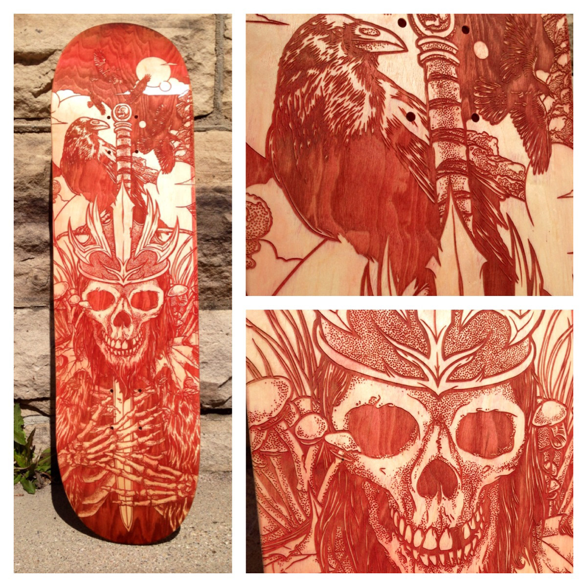 Heavy Lies the Crown - laser etched skate deck, 2014