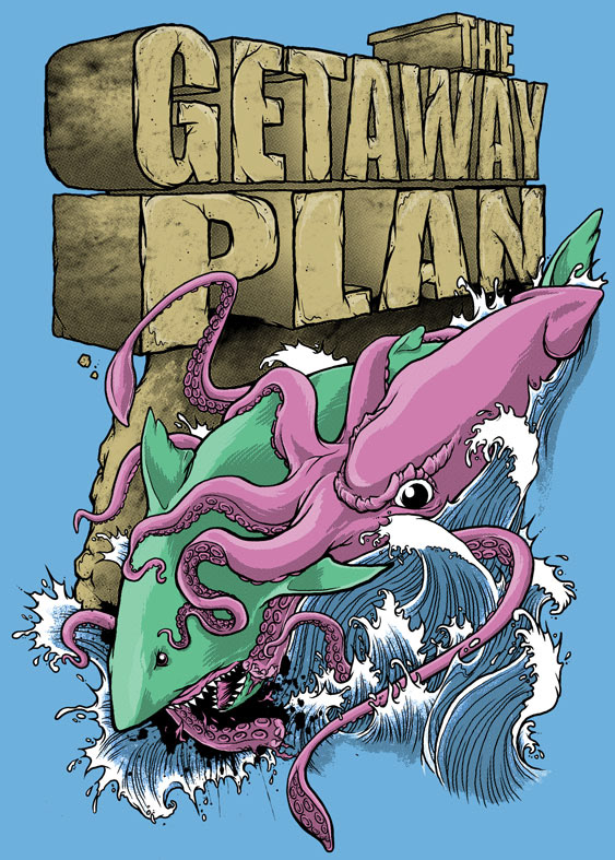The Getaway Plan - Shark vs. Squid tee - digital, 2009